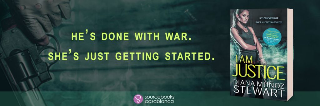 About the Author: Diana Muñoz Stewart is the award-winning, romantic suspense author of the Band of Sisters series, which includes I Am Justice (Sourcebooks Casablanca). She lives in eastern Pennsylvania in an often chaotic and always welcoming home that—depending on the day—can include husband, kids, extended family, friends, and a canine or two. When not writing, Diana can be found kayaking, doing sprints up her long driveway—harder than it sounds–practicing yoga on her deck, flying, climbing, or hiking with the man who’s had her heart since they were teens.