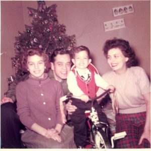 When I look at this picture, it evokes a lot—happy memories, a sense of loss, a bit of wonder, and gratitude. That’s me in the center with the cowboy hat, big ears, and tricycle. To my right is my mom, behind me my dad, and to my left is my sister Susan. It’s Christmas 1962.